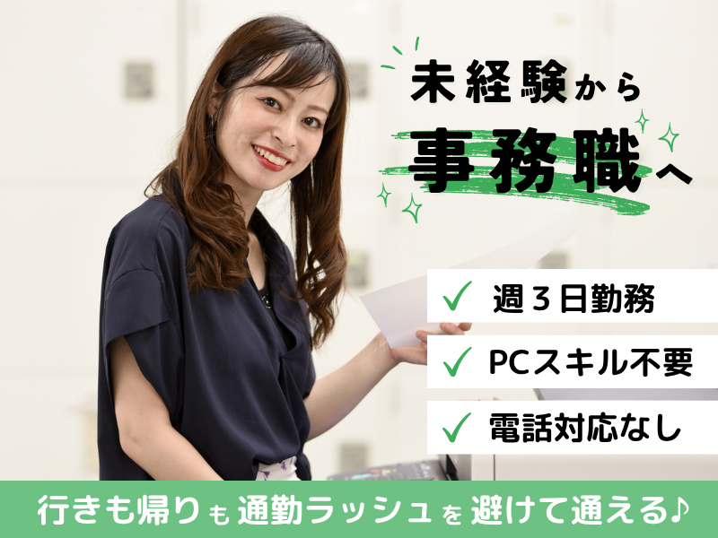 仕事内容 ✅ 未経験歓迎!PC基本操作で安心スタート ✅ 電話対応なしでコツコツ事務ワーク ✅ 駅直結/週3日~で無理なく続けられる ✅ 服装自由で働きやすさ◎ ▼概要 生命保険などの加入申し込みや請求に関する事務のお仕事です。 特別な知識やスキルは不要で、 シンプルな作業から少しずつ慣れていけます。 ▼<具体的には…> ・郵便物の開封←まずはここからスタート! ・書類の仕分け・マスキング ・書類のスキャン・ファイリング ・PCでのデータ入力 ※文字入力など基本的なPCスキルがあればOK。 ※一部、立ち作業をお願いする場合あり。 ※電話対応は一切ありません。 <⭐事務未経験の方も歓迎!> 「PC操作は最低限だけ」「電話対応は苦手…」 そんな方にピッタリの事務ワーク。 シンプル作業が多く事務経験のない方も 安心して始めていただけます。 <⭐週3日勤務で無理なく続けられる!> 勤務開始は少し早めの7:30~ですが、 通勤ラッシュを避けられて快適に出勤♪ 14:15にはお仕事が終わるので、 午後はゆっくり自分の時間を過ごせます。 <⭐自分らしく働ける環境!> 服装自由&ネイルOK(規定有)で、 自分のスタイルを大切に働けます✨ 落ち着いた雰囲気のオフィスで、 コツコツ集中してお仕事できます。