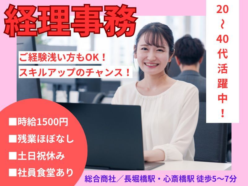経理事務 伝票作成 会計ソフト入力など/長堀橋駅より徒歩5分/土日祝休み/社会保険完備/交通費支給/大阪市中央区/fW6033g
