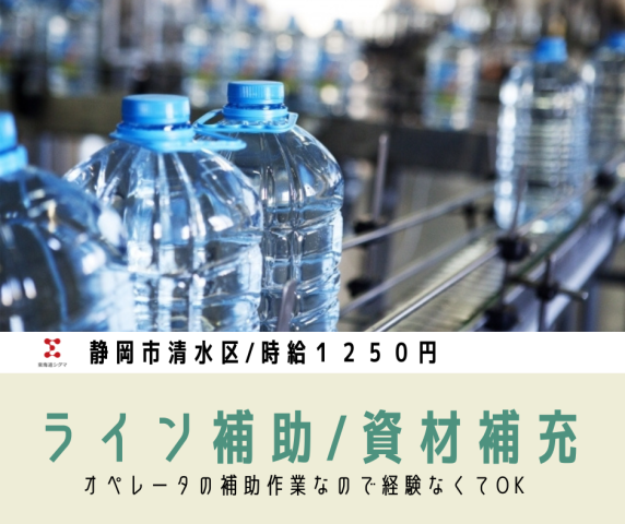 ペットボトル飲料のライン補助/資材補充や機械ストップ時のリスタート/静岡市清水区庵原町
