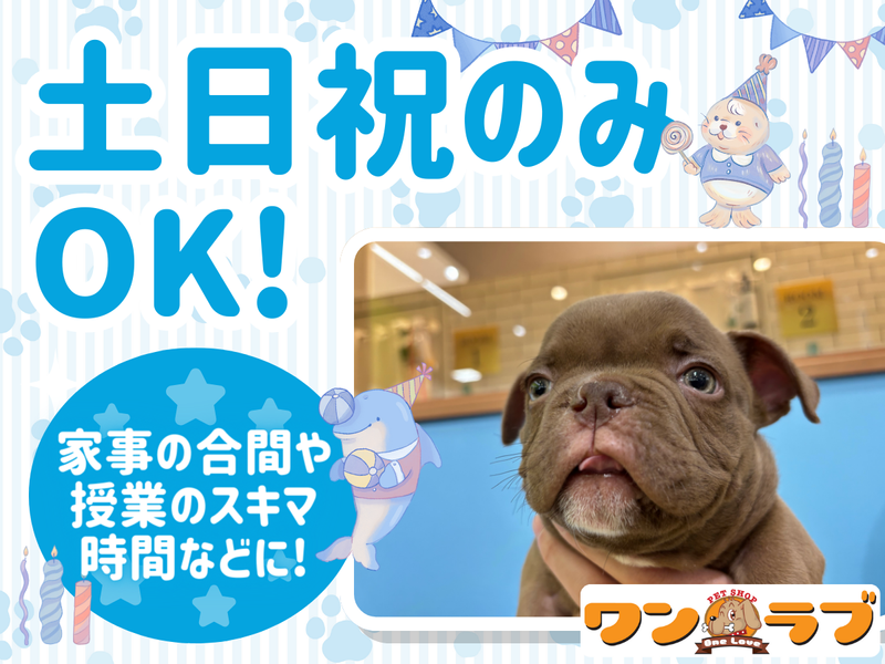 求めている人材 ✅ ワンちゃん・ネコちゃんが好きな方 ✅ トリミング経験を活かしたい方 ✅ ブランクがあっても再チャレンジしたい方 ✅ 学生で実践経験を積みたい方 ✅ 扶養内で働きたい主婦・主夫の方 ✅ 将来ペット業界でキャリアアップしたい方 私たちの職場では、実務経験者のみならず、トリマー専門学生の方も大歓迎しています! ブランクがあっても問題ありません。 また、スキマ時間を有効活用して稼ぎたい シニアの方々も応援しています。 【こんな方にもオススメ】 *授業前や授業後にバイトしたい学生の方 *副業やWワークを希望するフリーターの方 *ブランクがあってもOK *動物が好きな方 *獣医学部やトリマーを目指している学生 *将来、トリマーや動物病院スタッフ (動物病院受付、動物看護師、獣医師) として働きたい方 ワンラブでは、夢に向けた経験や知識を 得られる環境が整っています。 年齢や背景に関係なく、 皆さんの能力と経験を最大限に活かし、 一緒に素晴らしい職場環境を築いていきましょう!