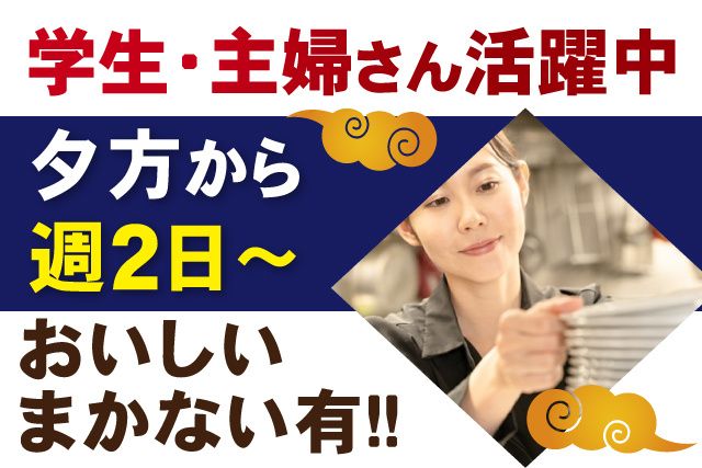 【夕方から&週2日からOK】土日は時給アップ!学生さん・主婦パートさん活躍中
