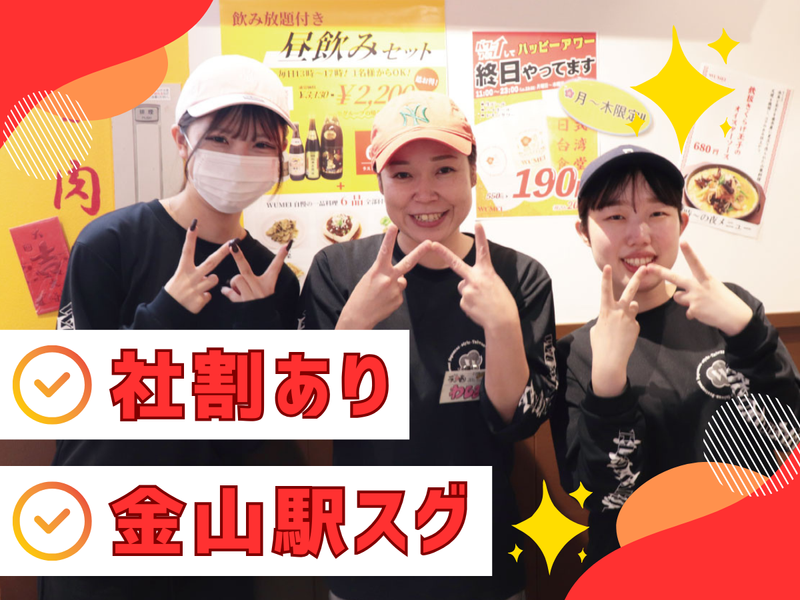 仕事内容 ✨台湾好き必見!美味しいまかないあり! ✨金山駅構内でアクセス抜群! ✨週2~、1日3時間~/扶養内OK ✨未経験&ブランク歓迎 ✨アルバイトと学校両立しながら 働くスタッフが多数在籍中♪ =================== 「ルーロー飯」「大鶏排」など 絶品メニューのある<人気台湾中華料理店> =================== ✅お仕事内容 =================== <金山総合駅構内!>台湾中華料理店で ホールスタッフを募集します。 人気のメニューの台湾料理の提供を お任せするので料理好きにぴったり◎ ※忙しい時は簡単な盛り付けなどの キッチン業務をお願いする場合があります。 ✅具体的には =================== ・料理提供 ・食器の片付け等のバッシング業務 ・レジ 難しいオーダー取りなどもないので、 メニューを覚えたり、機械操作などもなく 安心してスタートできますよ◎ 家事の延長感覚でできるお仕事です☆ ✅運営会社について =================== 名鉄グループである ”名鉄ミライート” 地域で親しまれる 飲食店の運営から駅や空港、 サービスエリアにおける 食事のご提供に加え、 世の中のニーズをとらえた サービスや商品開発など、 新たなチャレンジを進めています。 安心と安全、そしてお客さまへの 感謝の気持ちを胸に、 おいしさと、あたらしさで、 この街を笑顔で彩ります。 ✅HP =================== ◆会社ホームページはコチラ https://m-miraeat.com/