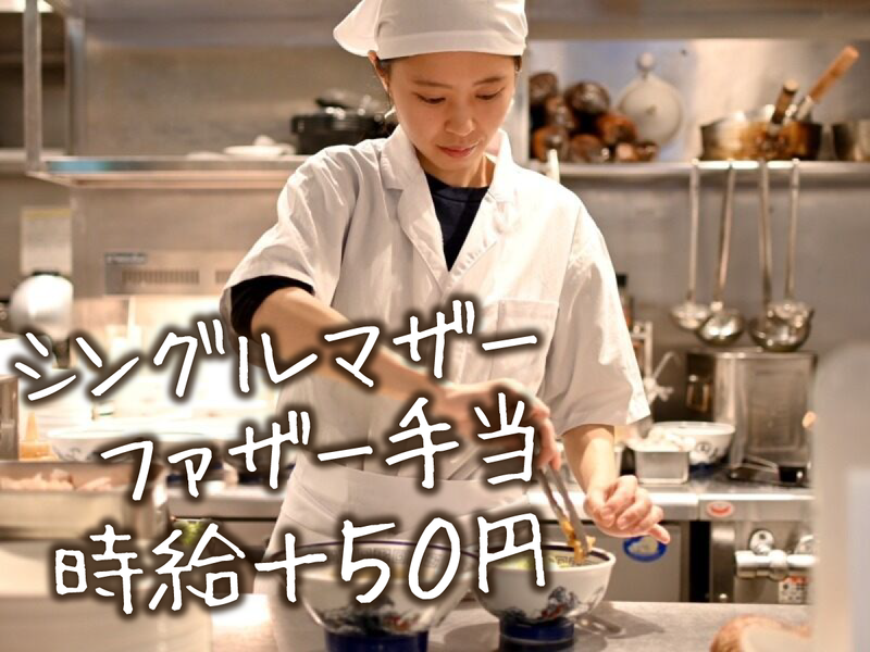 【保険制度】 雇用保険、労災保険、健康保険、厚生年金 待遇・福利厚生 【福利厚生】 ◆社会保険完備(法令遵守) ◆有給休暇あり ◆格安まかない165円 ◆制服貸与 ◆髪色自由・ネイルOK ◆社員登用有 ―――――――――――――― ◆通勤交通費全額支給(規程有) ◆昇給有(年2回) ◆まかない有(1食165円) ◆土日勤務は時給+50円 ◆シングルマザー/ファザー手当 ⇒ 時給+50円! ※対象…18歳未満のお子様がいる方 ※児童扶養手当証書の提出が必須です ◆友達紹介制度(規程有) 【紹介した側】 30,000円支給 【紹介された側】20,000円支給 ▶面接特典あり! └来店面接で「つけめん1食無料」♪