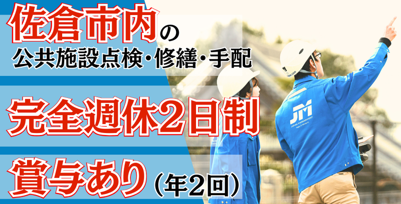 仕事の内容 \経験を活かして安定したキャリアを描ける/ ●管理業務は補助からスタート ●公共施設中心で、業務量・スケジュールが安定 ●経験・資格を給与や評価に正当に反映 ▶正社員登用制度あり  ̄ ̄ ̄ ̄ ̄ ̄ ̄ ̄ ̄ ̄ 本ポジションは、管理者の後任を見据えた「管理者補助」。 長期的なキャリア形成を前提とした採用です。 実務を通して業務理解を深めながら、 入社後3年を目安に管理ポジションを担っていただくことを想定しています。 ━━━━━━━━━━━━━━━━━━━━ 【仕事内容】 ・公共施設(学校・公民館等)の巡回 ・設備点検・軽微な修繕 ・不具合発生時の一次対応 ・協力会社との調整・立ち会い ※管理業務は補助からスタートします。 ※すべてを一度に任せることはありません。 ※現管理者が近くでフォローします。 あなたには管理者の補助として、現場業務と管理業務のバックアップをお願いします。 もちろんバランスを見ながら無理のないペースで業務を引き継ぎます。 【この仕事のポイント】 ・現場経験を管理の力に変えられる ・指示系統が明確で、現場が回しやすい ・公共施設中心のため、急な案件が少ない ・プレイヤー業務を続けながらキャリアアップ可能 <活躍中のスタッフ> 現在部署は6名の体制です。 40代の管理者と、30代の巡回員が中心になって活躍しています。 ━━━━━━━━━━━━━━━━━━━━ これからは無理を重ねる働き方ではなく、 経験を活かしながら「管理側へ軸足を移す」選択を。 当社の「管理者補助」は、 現場を理解しているあなたが、次はまとめる側へ進むためのポストです。 体力勝負から、段取りと判断力を活かす仕事へ。 安定した公共案件のもとで、腰を据えて働けます。