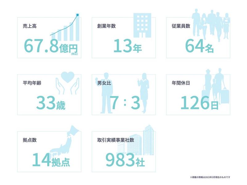 選考プロセス 応募 ↓ 書類選考 ↓ 適性検査(面接と前後する場合あり) ↓ 一次面接(各営業所) ↓ 二次面接 ↓ 内定 ↓ 必要手続き後、就業へ 売上増による営業所強化のための募集がほとんどです。 良い人が居ればすぐに採用したいため、採用まで時間はかかりません。 求人が気になったらひとまずご応募ください。