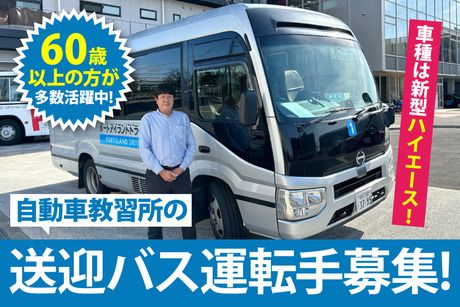 仕事内容 \決まったルート&予約制だから、安心して長く続けられる!/ 自動車教習所に通う生徒さんを、 自宅近くや駅などの集合場所から 教習所まで安全に送迎するお仕事です。 使うのは、自動ブレーキ付きのハイエース。 全車ナビ付きで、運転しやすく安心です。 送迎ルートは決まっており、完全予約制のため、 「道順が覚えられるかな?」 「予定が読めないのでは…」といった不安もありません。 無理のないスケジュールで運行できるので、 体への負担も少なく、60代のスタッフも 多数在籍&活躍しています! 中型免許が必要になりますが、 旧普通免許(中型8t限定)をお持ちの方であれば、 会社負担で【限定解除】=中型免許を取得可能! 費用はすべて会社が負担しますので、ご安心ください!