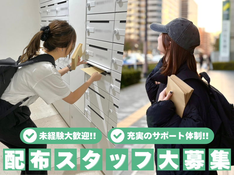 求めている人材 未経験歓迎!学生もフリーターも大歓迎! <こんな人にもピッタリです!!> ・とにかく稼ぎたい! ・成果に応じた報酬が欲しい! ・体を動かすことが好き! ・一人でモクモク作業したい! ・やりがいを感じる仕事が好き! ★あなたをサポートする仲間たち★ 現場責任者→社員1名、先輩アルバイトの皆さん 他拠点→大阪本社4名、神奈川拠点1名 実際に勤務される方からこんな声も届いています▼ 【アルバイトAさん(女性)の例】 未経験でなおかつ体力仕事で不安もたくさんあった中、 先輩スタッフの皆さんの手厚い指導や他拠点を含めた社員さんからのバックアップのおかげで、 女性でも全く問題なく配布できています!とても安心感のある環境です!