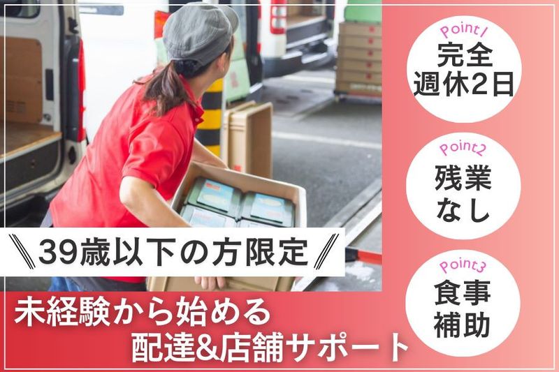【アピールポイント】 お弁当の配達員および 店舗運営アシスタントを正社員募集! ✅未経験・他業種からの転職も応援 ✅完全週休2日(日+他1日) ✅基本残業なし・日勤のみ ※39歳以下の方限定(例外事由3号のイ)