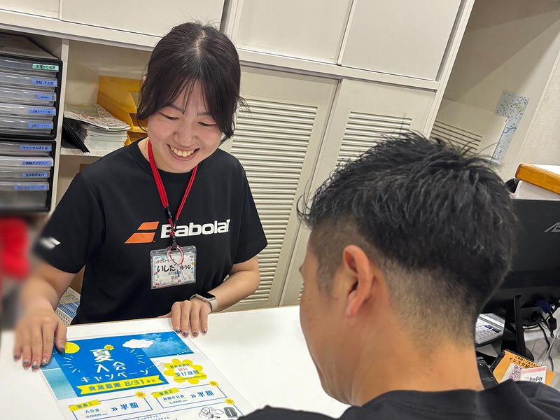 仕事内容 ○o*-*o○ 授業後や週末に働く学生さん活躍中 インドアテニススクールの受付Staff 土日や平日夜中心に働きたい方歓迎◎ ○o*-*o○ \おすすめポイント/ ────────── ●週1日~・1日3h~OK! ●平日夜・土日だけの勤務もOK◎ ●未経験・初バイトも安心のサポート体制 ●室内型スクールだから年中快適♪ ●社割あり!テニスをお得に楽しめる! ┏…………………┓ : お仕事内容 : ┗…………………┛ テニススクールのフロントとして 受付・接客業務を担当します。 *来校者の受付 *ご入会の手続き *お問い合わせの受付取り次ぎ など …難しいことはないので安心◎ 簡単なことから始めて 少しずつ慣れていけば大丈夫♪ 「接客未経験」「初バイト」 そんな方ももちろん大歓迎です! まずは来校された方に元気よく 挨拶することから始めましょう! 先輩スタッフが優しく&明るく フォローするのでご安心を♪ 常時2~3名のスタッフがいるので 何か困った時も安心です! 当スクールの“顔”として 素敵な笑顔で活躍してください◎ 慣れてきたら見学者のご案内など、 少しずつ仕事の幅を広げていきます。 ・~・~・~・~・~・~・~・~・~・ ★…自分にぴったりの働き方叶う♪ ──────────────── 週1日・1日3h~OKなので、 授業後の時間や土日を使って 無理なくシフトに入れます。 学校やプライベートと 両立しやすい働き方です♪ ★…社割でお得にテニスが楽しめる♪ ───────────────── 「この機会にテニスをはじめたい」 「体を動かすのが好き」 そんな方に嬉しい社員割引あり♪ バイトをしながら お得にテニスを楽しめます! ・~・~・~・~・~・~・~・~・~・ 【「テニススクールノア」って?】 雨の日でもレッスン可能な 室内型のテニススクール事業を運営。 ただのテニススクールではなく 仲間と一緒に成長しながら 新しい自分と出会って もっと自分が好きになれるー 毎日をワクワクに変えられるような そんな場所を目指しています! 社員・アルバイトの垣根なく みんなで意見を出し合って お客様が快適に過ごせる 環境づくりに取り組んでいるので あなたも何か思いついたら どんどん遠慮せず教えてください♪ ・~・~・~・~・~・~・~・~・~・