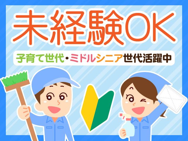 仕事内容 スーパーの清掃パート・アルバイト募集! 午前中のみ!Wワーク・扶養内もOK。 主婦(夫)の方、子育て世代の方や、 ミドルシニア(中高年)世代の方など 幅広い年代の方が活躍中! <仕事内容> ヨークベニマル名取バイパス店でのお仕事です。 スケジュールに沿いながら作業を行います。 具体的にはお店の出入り口や、階段、通路、 トイレなどの掃除。 モップや掃除機を使った清掃。ゴミ回収など。 特別な経験・資格は必要ナシ! 作業内容をしっかり教えてゆくので、 普段のお掃除感覚からスタートできます。 清掃員の仕事が未経験から始めた方も活躍中! <働き方について> 時間選択OK A.7:30〜9:30 B.7:30~11:00 週3日~4日程度の勤務シフト制です。 お気軽に働く曜日ご相談ください。 A.B両方の時間に対応可能な方歓迎! 扶養内で働きたい。 午前中のみのWワークを探してる。 短時間で無理なく働きたい。 など、プライベートに合わせて働けます。 日常清掃スタッフの一員として スーパーを利用する人々が快適に過ごせる 環境作りをしませんか? <企業の特徴> 「快適な居住空間を提供する」 という理念のもと、 時代のニーズに的確にお応えする ビルメンテナンスを心がけながら、 自信をもって働ける 明るく楽しい職場をめざしています。 当社では子育て世代の方、主婦(夫)の方、 ミドルシニア(中高年)世代の方など 幅広い年代のスタッフさんが活躍しています。