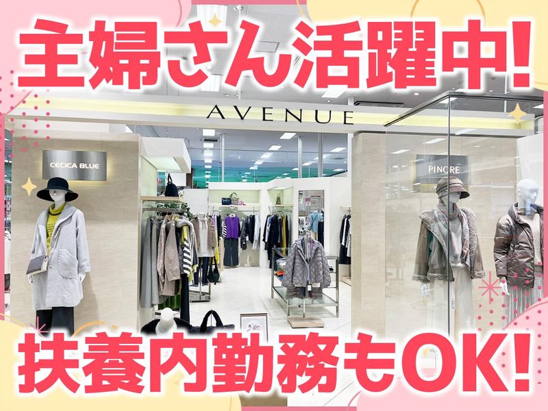 仕事内容 \家庭やプライベートを大切にしながら、アパレルのお仕事にチャレンジしませんか?/ 30代・40代・50代の主婦さん・ブランク復帰の方が多数活躍中! 未経験スタートでも、気さくなスタッフが丁寧に教えるので安心です◎ ==================== 【お仕事内容】 まずはカンタンな作業からスタート! ・レジでの接客対応 ・商品の陳列・整理整頓 ・店内の清掃など 慣れてきたら、お客様との会話を楽しむような接客にも挑戦! よく来店されるお客様とは、ご近所話をするような感覚で会話が弾むことも♪ 「お話し好き」「人と関わるのが好き」な方にはピッタリのお仕事です。 ※ノルマは一切ありませんので、プレッシャーなくお仕事ができます◎ ==================== 【未経験でも大丈夫!】 ・研修は事前に丁寧に行いますので未経験の方でも安心して働いていただける環境です。 ・勤務時はお店の雰囲気に合った服であれば私服でもOKです! ・社員割引でお得にアイテムを購入でき、小物だけお店のアイテムを身に付け、よりオシャレに!なんてことも! ==================== 【AVENUE で働くポイント!】 ✅ ノルマなしで安心 ✅ 社員割引あり(お気に入りのアイテムがお得に!) ✅ 服装・髪型・ネイル・ピアス自由(お店の雰囲気に合っていればOK) ✅ 扶養内勤務・WワークもOK ✅ 研修制度あり(未経験でも安心スタート) ✅ 社会保険完備(条件あり) ✅ 客層:30代~60代の女性がメイン!落ち着いた雰囲気の中で働けます♪ ==================== ✅2026年4月に山陽百貨店で新店(ピエール・カルダン)オープン! ✅オープニングスタッフ同時募集中!