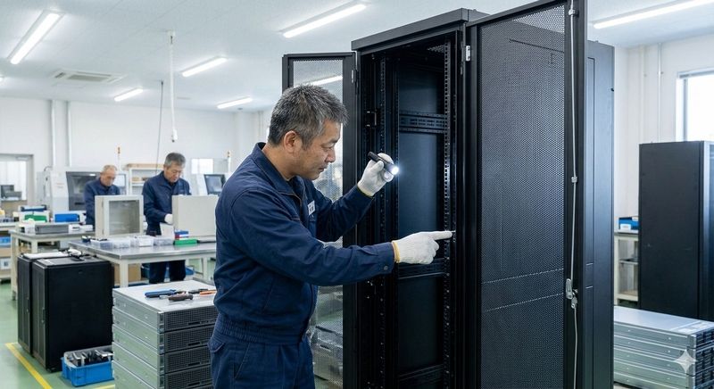 通信機器用キャビネットの検査および梱包