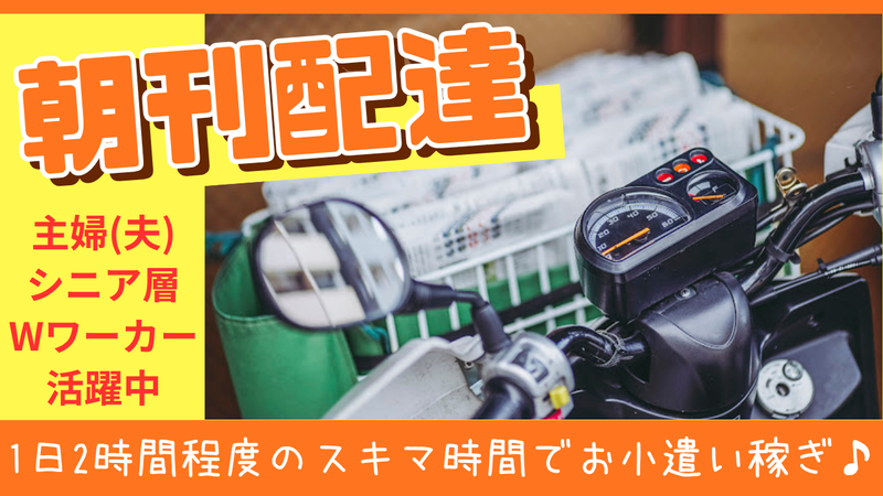 仕事内容 ========================= つくば市北条地区にて 『新聞の朝刊配達』をお願いします! ========================= ※急募※ 配達時間は午前2時~5時の間で ”実働は2~3時間程度”! 「朝5時には配達が終わるので、 その後の時間を自由に使える」 というのが大きな魅力です。 ルートは固定されているので、 一度道を覚えてしまえば 毎日同じコースを回るだけ◎ 人と接する機会は少なく、 モクモクと取り組める仕事です♪ ========================= 本業前や家事の合間にちょっとお仕事♪ 短時間×副業・扶養内OK! ========================= こんな方が活躍中です! ■主婦さんや主夫さん → 家事・育児の前に「2時間で月8万円」 ■シニア年代の方 → 年金プラスαの収入&健康習慣づくりに ■Wワーカーさん → 本業前に副収入を確保 ■学生さん → 授業前のスキマ時間にお小遣い稼ぎ ライフスタイルを大切にしながら、 短時間で効率よく収入を得られます★