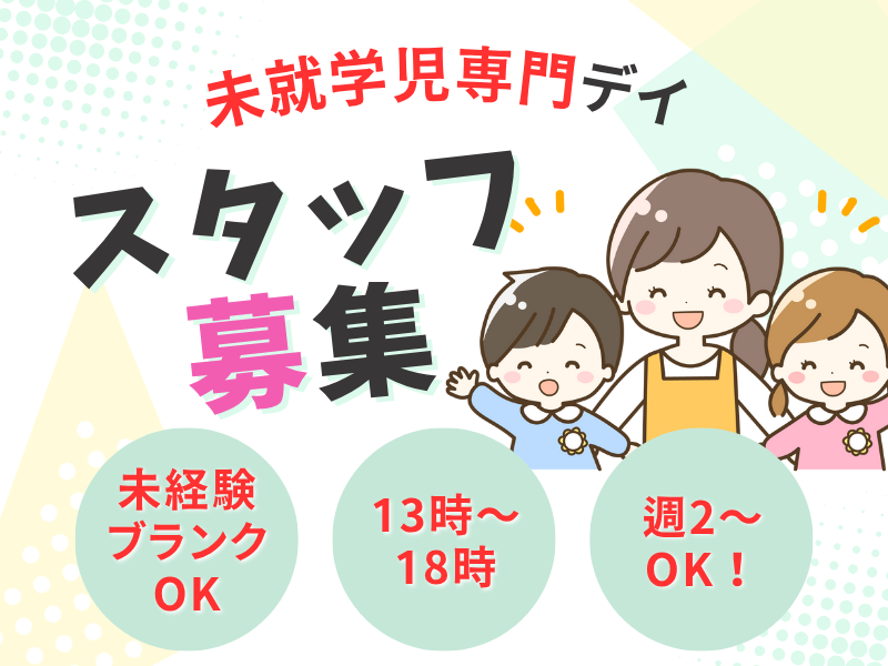 求めている人材 無資格OK!未経験者の方もご応募ください! 子どもの成長の手助けをしたい、 社会に貢献したい、 という気持ちをお持ちの方歓迎! 有資格者優遇☆ ◎普通自動車免許をお持ちの方歓迎! ★実際に働いている方は、 元保育士や介護職員、 学童保育スタッフ、 学生さんが多いです。 他にも身近に発達に特性のある子がいて、 手助けをしたいと思った、 などの想いを持って働いて下さる 未経験の方もたくさんいます!