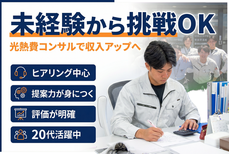 仕事内容: 光熱費の見直しや省エネ設備(エコキュート・IHなど) のご案内を行います! <具体的には> ・お客様へのヒアリング ・光熱費削減のご提案 ・最適なプランや設備のご案内 【この仕事に向いている方】 ・目標に向かって努力できる方 ・結果を出すことにやりがいを感じる方 ・スポーツや部活動に打ち込んできた方 ・評価が明確な環境で働きたい方 【スポーツ経験者の方へ】 これまでの経験で培った ✅継続力 ✅目標達成への意識 ✅チームで取り組む力 上記はこの仕事でも大きな強みになります! \スポーツではなく、仕事でひと花咲かせませんか?/ これまで本気で取り組んできた経験を、 次は仕事というフィールドで活かせる環境です! 努力や成果が正当に評価される環境で、 新たなキャリアに挑戦してみませんか? 【給与】 月給26万円~+インセンティブ ・平均月収:61.5万円 ・月収100万円以上の実績あり 【働き方】 完全週休3日制(月・火・水休み) 年間休日150日 メリハリをつけて働ける環境です。 【最後に】 「しっかり稼ぎたい」 「自分の力を試したい」 そのような想いをお持ちの方からの ご応募をお待ちしております!