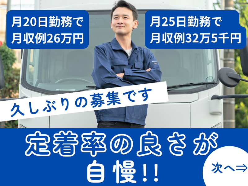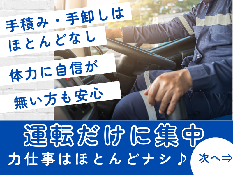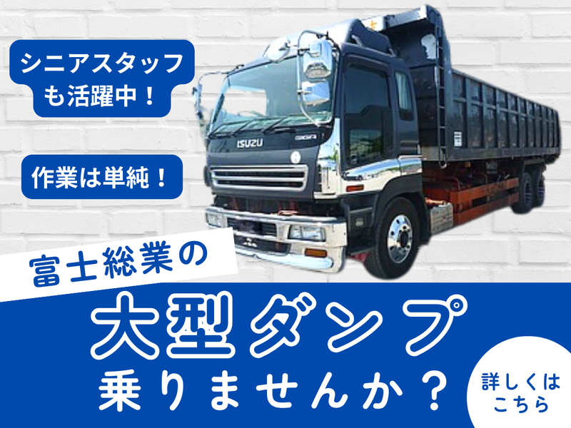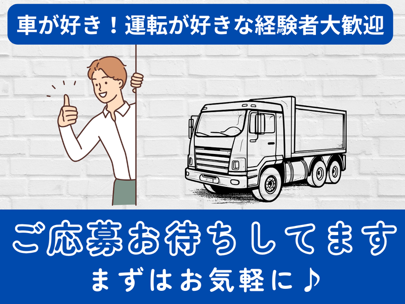 求めている人材 ◆要大型免許 ◆ダンプ未経験OK ==== こんな方にオススメ! ==== ✅大型免許を活かして、 長く安定して働きたい方 ✅手積み・手降ろしの少ない 運転メインの仕事を希望する方 ✅決まったルートで落ち着いて働きたい方 ✅車の運転が好きで、 大型車に乗る仕事にやりがいを感じる方 ✅ダンプ未経験の方も、 意欲があれば丁寧にサポートします ✅中高年やシニアスタッフも活躍中! (年齢より経験・姿勢を重視します) 働き方などお気軽にご相談下さい