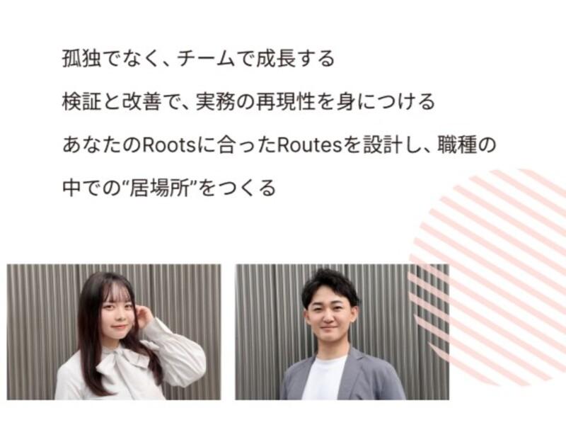アピールポイント: 未経験でも歓迎―ただし“プロ”として 歓迎するのは、こんな方です。 反応が早い/締切を守る/数字で会話できる 観察→分解→再現を楽しめる 逆に、合わないのはこんなケース。 フィードバックが苦手で行動に移らない 「バズったら嬉しい」止まりで、事業のKPIに目が向かない “未経験OK”は“誰でもOK”ではありません。本気の人を本気で支えるという意味です。 経験年数よりも、地続きの努力が作る“再現性”です。 未経験からでも、正しい順番で、正しい習慣で積み上げれば、SNSマーケターとして戦えます。 どんな職種でも、最初は経験のないところから始まる。 だからRoots&Routesは、挑戦に本気で向き合う人の門戸を開きつづけます。 あなたらしい働き方を尊重します 私たちは、一人ひとりの人生設計や働き方に寄り添える会社でありたいと考えています。 ・プライベートを大切にしたライフスタイル ・時間や場所にとらわれない自由な働き方 ・常にチャレンジできる刺激的な環境 ・将来の起業を見据えたキャリア形成 あなたが思い描く「理想の働き方」を、ぜひ教えてください。 その理想に向かって最短距離で進めるよう、会社全体で全力で支援・サポートしていきます。 たとえ将来的にフリーランスや起業という道を選ばれたとしても、弊社とのご縁が切れることはありません。 プロジェクトのご依頼やコラボレーションなど、新たな形で関係を築いていけることを大切にしています。 本気の定義~私たちが見るのは心のギア~ 「本気なら誰でも受け入れたい」と言うと、甘く聞こえるかもしれません。そこで私たちは本気を可視化します。 学習の連続性:アウトプットを大切にし、改善をし続ける オーナーシップ:数字に責任を持ち、自分事として考える 誠実さ:できないことを正直に言い、助けを求める勇気がある 粘り強さ:再現できるまでやる。1回当たったでは終わらせない 履歴書よりも、日々の行動ログを評価します。未経験でも「心のギア」が入っている人は、加速度的に伸びます。