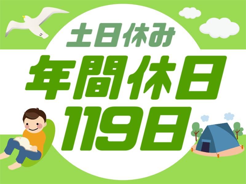 休日休暇 土日祝(企業カレンダーによる) 【年間休日119日】 *GW・夏季・年末年始休暇あり *慶弔休暇あり *有給休暇(※入社半年後に10日間付与)