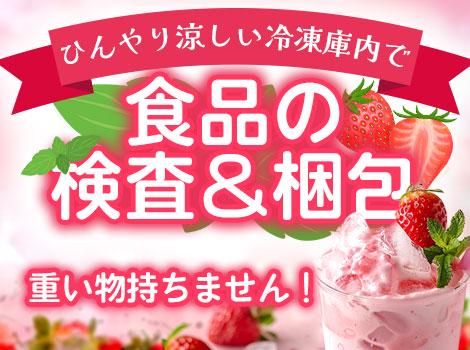 仕事内容 \\この求人のポイント// ===================== ✅日勤専属で生活リズム安定 夜勤ナシだから体への 負担も少なく、無理なく働けます ✅涼しい冷凍庫内作業 空調が効いていて年中快適!夏もひんやり♪ ✅軽作業でシニア世代も活躍中 食品は小さくて軽いので、 男女問わず安心して続けられます✨ ✅未経験からスタート可能 マニュアル完備&ローテーション制で 覚えやすい! ✅20〜50代まで幅広く活躍中 落ち着いた雰囲気の中で、 もくもくと作業できます ⭐仕事内容⭐ ━━━━━━━━━━━━━━━━━━━━ 冷凍庫内での食品検査・梱包作業です。 作業内容はとてもシンプル! 未経験の方でもすぐに覚えられます。 ⭐具体的な業務内容⭐ ━━━━━━━━━━━━━━━━━━━━ ①目視検査・運搬 冷凍庫内で食品をチェックし、 かごに入れて次の部屋へ運びます ②箱まとめ・パレット積み 食品が入ったかごを4箱まとめて運び、 梱包された段ボールをパレットへ積みます ③検品・梱包 かごから食品を取り出し、 検品しながら段ボールに移して梱包 梱包済みの段ボールは ラインで②の部屋へ送ります ※1つの食品は携帯電話より軽量! 体への負担も少なめです ⭐お仕事のポイント⭐ ━━━━━━━━━━━━━━━━━━━━ 上記の作業を一週間ごとに ローテーションするので 「同じ作業は飽きる…」 そんな方にオススメです! 【研修について】 初日に安全研修と実務研修を実施します。 しっかりとした研修体制で、未経験の方も 安心してスタートできます! 職場見学も可能です!! 作業スピードや職場の雰囲気を 実際に確認することもできます!