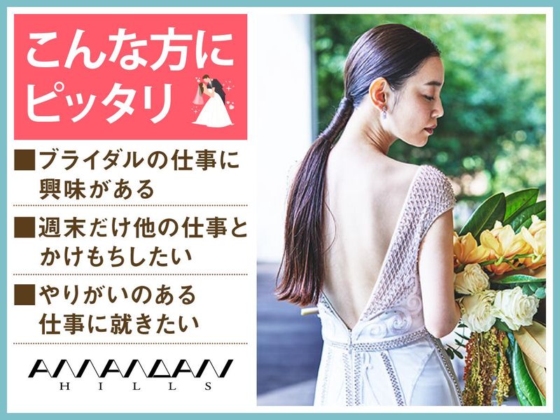 仕事内容 ✨リゾート一軒家風の結婚式場✨ ✅感動いっぱいの結婚式を一緒にサポート♪ ✅週1~の柔軟シフトでWワーク・副業OK! ✅フリーター・主婦パートも活躍中♪ アマンダンヒルズは小高い丘の上に佇む、 外国のリゾートのような結婚式場。 ウェディングのお手伝いをするお仕事です◎ <主なお仕事内容は…> ■仕込みの手伝い ■オープン準備 ■備品・お皿の準備 ■簡単な調理と盛り付け ■洗い場での洗い物作業 など お客様に提供する料理の 簡単な調理と盛り付けをお任せ◎ 心を込めて調理をしテーブルが華やぐように綺麗に盛り付けます♪ 未経験でも先輩が丁寧にお教えするので安心!一流シェフの技を学べるチャンス! ―――――――――――――――― フリーター・パート主婦さん オススメのポイントはこちら★★ ―――――――――――――――― ・週1日~1日4時間~OKで融通◎ ・本業が休みの土日だけ等大歓迎! ・かけもち・副業OK! ・絶品のまかないアリ(^^) まかないは本格料理人たちが 美味しい食材を使って作ってくれます♪♪ 現在アルバイトスタッフは約20名ほど在籍! 高校生や大学生、フリーター、主婦など幅広く活躍中! 10代20代の方が多く、 和気あいあいとした雰囲気です。 ブライダル=女性と思われがちですが、 性別問わず活躍できます! 男女ともに活躍中です! ―――――――――――――――――― こんな方にピッタリです! ―――――――――――――――――― ■モクモクと作業するのが好きな方 ■裏方の仕事に興味がある方 ■接客は少なめがいい方 ■ブライダルやレストランに興味がある方 洋菓子店、レストラン、ホテル、結婚式場、カフェなど、 経験がある方は活かしていただけます★ もちろん未経験でもOK! ―――――――――――――――― 未経験者歓迎! みんなで助け合う雰囲気です ―――――――――――――――― 「働くこと自体久しぶり…」 そんな方もご安心ください。 不安がなくなるまで、 スタッフ全員でサポートします◎