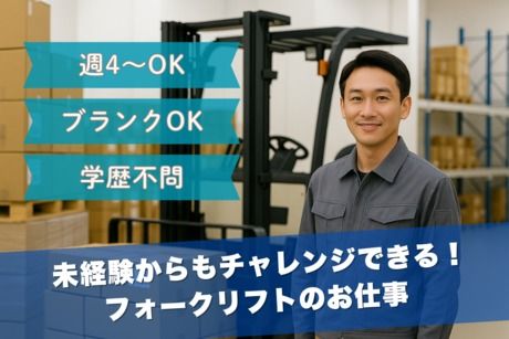 職場環境 【従業員構成】 フリーターさん歓迎! 経験者・リフト免許保持者大歓迎!! 20~50代の男性女性共に活躍中! 【職場の雰囲気】 協調性がある 業務外交流少ない 立ち仕事 お客様との対話は少ない 初心者活躍中 自分の都合に合わせやすい 知識、経験不要