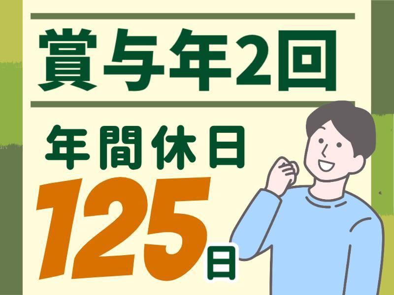 休日休暇 土日祝休(会社カレンダー) *GW、お盆、年末年始の大型連休あり *年間休日125日 *有給休暇 *育児・介護休暇あり