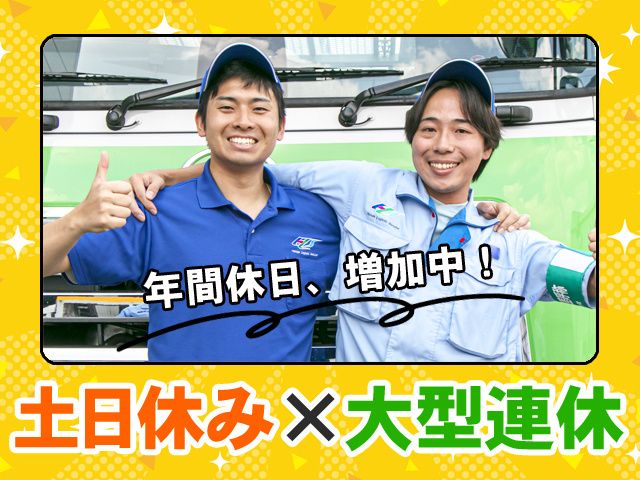 休日 週休2日制度(基本土日休み) GW、夏期、年末年始(それぞれ7~9連休) 年間休日113日 2027年2月より年間休日116日に変更予定 <有給休暇は月1日以上の取得を奨励> 有給の取得日数は年間平均は12日以上! <男女問わず育児休暇取得者多数!復帰率100%> 一括、分割など希望に合わせて取得できます。 <ワークライフバランスの両立を実現> 年間休日の増加・有給が取得しやすいなど、 仕事とプライベートと両立できる体制を整えています。 また業務では拘束時間・長時間労働等の 改善に取り組むべく、より良い職場環境づくりを推進! その結果、働きやすい職場認証制度の認証を取得しました。