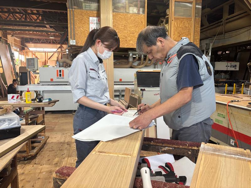 アピールポイント: ◯仕事のやりがい ・モノを形にする達成感 ・「自分がつくった!」という喜び ・お客様に喜ばれるやりがい ・できる作業が増えていく成長の実感 特別なスキルがなくても、コツコツ続ければ立派な技術が身につきます。 ◯入社後の成長ステップ 1ヶ月目:補助作業・工具の使い方を覚える 6ヶ月目:簡単な加工や組み立てを担当 1年:家具や建具の製作を段階的に担当 無理なくステップアップできる環境です。 ◯安全対策 必ず先輩がそばについて、一緒に作業します。 安全第一の社風で、危険な工程は一人では行いません。 機械には安全装置あり/未経験でも安心して働けます。 ◯社員インタビュー(入社7年目・24歳) 「未経験で入社しましたが、先輩がとても優しく教えてくれます。 少しずつできることが増えていくのが楽しいです。 人間関係も良く、続けたいと思える職場です!」