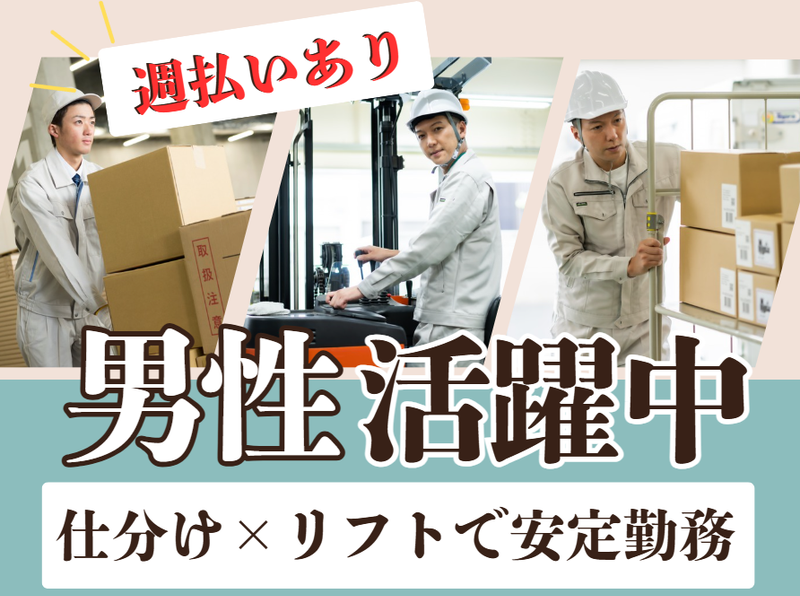 仕事内容 ✨リフト免許を活かして働ける!✨ “仕分け中心”でムリなく続けやすい⋆* 「リフトには乗れるけど、 ずっと乗りっぱなしはちょっと…」 そんな方にちょうどいい職場です! 【仕事内容】 ━━━━━━ 扱うのは、 テレビ・冷蔵庫・洗濯機などの 大型家電を中心に 身近な家電製品になります! 商品にバンドがついているので それを引っ張ってパレットに乗せていく 作業もあります。 なので、男性を中心に 力仕事に自信がある方におすすめです! ★リフト作業/2割、手元作業/8割 の比率になります。 具体的には… ・リーチリフトを使用した入出庫 ・パレット移動、ラックへの格納 ・家電製品の仕分け ・バーコードスキャン ・行先別の仕分け台への移動 ・検品、数量チェック ・シール貼りや簡単な付帯作業 など。入荷量によって多少変動あり! ❖_Work Point 01_❖━━━━━━━━━ 入社後は、まずは手元作業からスタート。 作業の流れをつかんでから リフト業務へ進むので、久しぶりに 免許を使う方でも安心です◎ ❖_Work Point 02_❖ ━━━━━━━━━━━━━━━━━━ リフト免許を活かしながら、乗りっぱなし ではない程よい作業バランスで働きたい方 に向いている職場です。 黙々と作業に集中する時間も多く、 体を動かすワークスタイルが 好きな方とは特に相性◎ 週5日勤務で安定して働けるので、 腰を据えて長く続けたい方にもぴったりです 最後までお読みいただき ありがとうございます! 「気になる」「詳しく聞きたい」 そんな方も大歓迎! ぜひお気軽にご応募ください。 お待ちしております! ◤ ̄ ̄ ̄ ̄ ̄☎⋆.✩ ̄ ̄ ̄ ̄◥ お電話でのご応募も歓迎です! ℡ 047-347-1281 ※応募者以外の電話はお断り ◣____________◢
