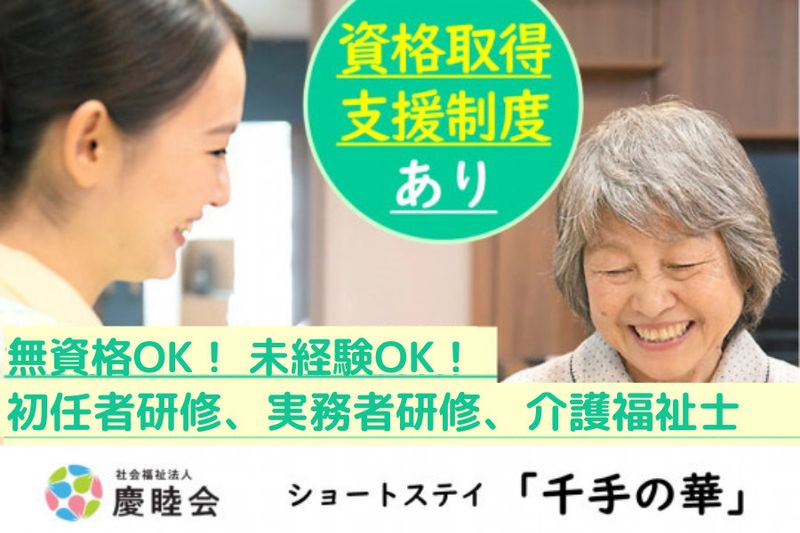 【仕事内容】 社会福祉法人慶睦会 ショートステイ千手の華にて、ご入居様の生活サポートをしていただく介護スタッフを募集します。 ■仕事と子育ての支援に積極的な職場です。 ・お子さんの急な病気、学校行事のお休みにも対応いたします。 ・子育て中のための制度が多くあります。 ■具体的な仕事内容 ショートステイにおける入居者様の介護業務全般をお願いします。 (食事介助・入浴介助。排泄介助・その他日常生活に関する支援など) ●早番、日勤、遅番 ・食事や入浴、排泄の介助 ・バイタルチェック ・レクリエーション など ●夜勤 ・月5回程度 ※もっと稼ぎたい!などご希望があれば夜勤回数を増やす事が可能です。 ※夜勤回数の増減はご相談に応じます。 【PRポイント】 ・心からの感謝の言葉を貰えるお仕事です ・一人ひとりと向き合う寄り添った介護が可能 ・毎月の希望休OK!有給休暇も高取得率! いきなりのご応募は不安という方も是非施設見学だけでも歓迎です。 ご質問などもお気軽にお問い合わせください。 ご連絡・ご応募お待ちしております ★Instagramでも発信をしています!『 慶睦会 インスタグラム 』で検索してみてください!