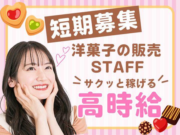 応募資格 ★未経験OK、経験者も大歓迎!! ★大学生、フリーター、主婦(夫)活躍中!! ★短期のお仕事なので、扶養内で働きたい方も大歓迎!! \こんな方にオススメ/ ◆接客・販売のお仕事が好きな方 ◆お菓子やスイーツが好きな方 \活かせる経験・スキル/ ◆売り場つくり(商品ディスプレイ、値札付け、在庫管理、棚卸など) ◆レジ業務 ◆コールセンター業務など \先輩スタッフの出身業界/ 百貨店、直営店、家電量販店、飲食店、国内アパレル、海外アパレル、アパレルショップ、携帯ショップ、スーパー、空港、銀行窓口、一般事務、営業事務、総務事務、経理事務、データ入力、システムエンジニア(SE)、ゲームプログラマー、コーディング、WEBデザイナー、3DCGデザイナー、カラオケ、満喫、アミューズメントパーク、パチンコ店、ピッキング、検品、仕分け、シール貼り、フォークリフト、営業、不動産営業、人材派遣営業、保険営業 などなど様々な業界・業種で働いてきた方が多数在籍!