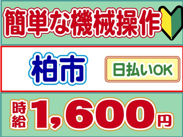 仕事内容 簡単機械操作(マシンオペレーター)スタッフ大募集! 夜勤で高時給!時給1,600円でしっかり稼げるお仕事 ※18歳以上(深夜勤務を伴うため) 〇初心者の方も安心して始められます 【マシンオペレーター・検品スタッフの仕事内容】 柏市にある半導体・自動車部品を扱う企業でのお仕事 具体的には 半導体・自動車部品の ・マシンオペレーター ・検品 をお任せします 夜勤固定の為、割増ありで稼げます! 未経験でもOKのお仕事です 少しでも気になったらお気軽にご応募ください 30分~1時間程度の職場見学を実施しております 【マシンオペレーター・検品スタッフのポイント】 〇単純作業×もくもく作業 〇未経験OK 〇夜勤のみ 〇時給1,600円スタート 〇20代30代40代50代活躍中 〇男女活躍中 〇外国(中国の方)スタッフ活躍中 〇シニア・中高年活躍中 〇車通勤OK 〇日払いOK(規定内) 〇職場見学OK 〇履歴書不要 【勤務について】 〇夜勤のみ(20:00~翌5:00) 〇週休2日のシフト制 急な発熱・体調不良・冠婚葬祭など、 突発的なお休みに柔軟に対応しております。 【経験活かせます!】 〇製造・印刷工場パート・アルバイト 〇機械加工・機械操作パート・アルバイト 〇検査・検品パート・アルバイト 〇主婦(夫)さんパート・アルバイト ブランクある方もOKです 経験の浅い方もOK コーディネーター・定着支援のWサポート体制導入 「マイリク定着支援」導入企業! アンケートで職場の様子を確認し、 コーディネーター・定着支援担当が連携してサポート。 はじめての派遣でも安心して働けるよう迅速かつ 丁寧にサポート対応いたします。 ご不明な点はお気軽にお問い合わせください。 お電話でのご応募も受付中! 株式会社ロフティー柏サテライトオフィス TEL0800-222-6888(フリーダイヤル) 採用担当まで お仕事情報などはこちら https://entori.jp/lofty-kashiwa