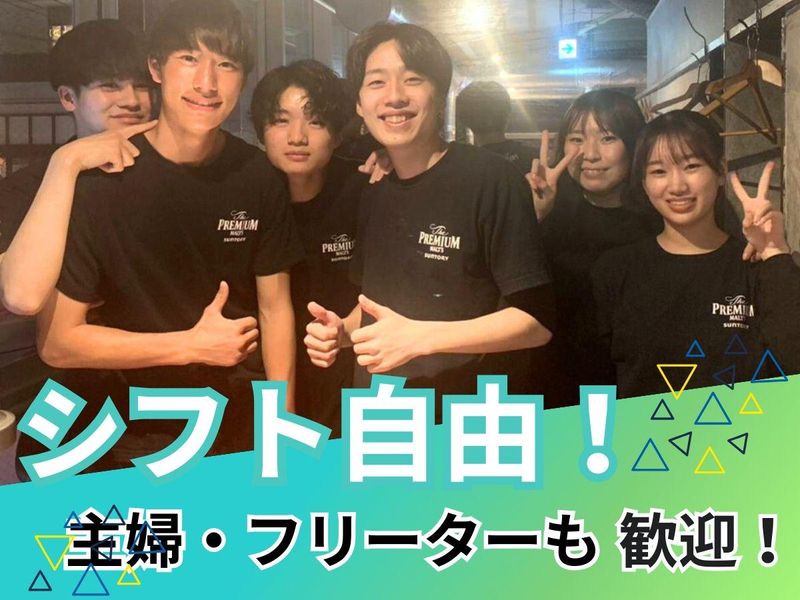 休日休暇 シフトは希望制だから 自分の予定や都合にも合わせやすい♪ 学業やプライベートや 家庭との両立もバッチリ! 終電の時間も考慮するので お気軽にご相談くださいね! 笑顔がいっぱいの楽しいバイトです! めっちゃ面白くて楽しくて働きやすいお店!