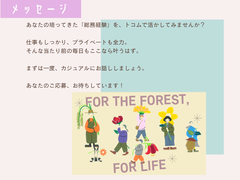 仕事内容 ✅ 経験を正当評価! 給与計算・労務の経験を 即戦力としてお迎えします。 ✅ 年間休日125日! 完全週休二日制で土日祝は完全にお休み。 オンオフのメリハリ抜群◎ ✅ 17時定時!原則定時退社です 夕方以降の時間は、すべてあなたの自由◎ ✅ 自分らしいスタイルで! 服装・髪型・ネイル等、基本すべて自由です。 「これまでの事務経験を 活かして専門性を高めたい」 「数字を扱う実務経験を 落ち着いた環境で発揮したい」 そんな想いを持つ総務・労務実務経験者の方を、 私たちは探しています! 今回募集するのは、 当社が提携するクライアント企業の 労務管理・給与計算業務を担当するポジションです。 直接、顧客企業を訪問することはありません。 電話やメール、Web会議ツールを使って スマートに連携しながら、 多くの企業の「働く」を支える、 専門性の高いポジションです! ■お仕事内容 ┈┈┈┈┈┈┈┈┈┈┈┈┈┈┈•• 提携しているクライアント企業 (社労士事務所・税理士事務所) の「パートナー」として、 顧問先企業のバックオフィス業務を代行します。 最大のポイントは、 社内に「社会保険労務士」が 在籍していること! 専門家の指導の下で働くので 分からないことがあっても、 すぐに相談・確認ができる環境です。 【具体的には…】 ① 給与計算業務 勤怠データに基づき、 毎月の給与計算を行います。 ② 労務・勤怠管理 勤怠データのチェックや 社会保険の加入が必要か どうかの要否判断を行います。 ③ 社労士事務所との連携 書類の送付や、法令改正に伴う相談など 専門家とやり取りを行い 正確に業務を進めます。 ④拠点間での連携 東京オフィスのスタッフと、 Web会議ツールやチャットを用いて連携。 ⑤ その他、付随する事務 電話対応、書類作成など。 ■働く環境のリアル ┈┈┈┈┈┈┈┈┈┈┈┈┈┈┈•• Q. 残業は本当に少ない? A.はい、原則定時退社です。 給与計算の時期などは 多少の業務集中はありますが、 それでも17時過ぎには 帰宅できる環境です。 ┈┈┈┈┈┈┈┈┈┈┈┈┈┈┈ Q. 服装が自由なのは本当? A.本当です。 事務職としての清潔感があれば、 髪色やネイルなど、あなたらしいスタイルで 働いていただけます。 ┈┈┈┈┈┈┈┈┈┈┈┈┈┈┈ Q. 職場の雰囲気は? A.穏やかで、協力し合える環境です。 フォーマルな中にも、 お互いを尊重し合う空気が流れています。 一人で抱え込まず、周囲と協力しながら 進められる体制です。 ■私たちの雰囲気について ┈┈┈┈┈┈┈┈┈┈┈┈┈┈┈┈•• 有限会社トコム自体のホームページはありませんが、 グループ会社のサイトをご覧いただくと、 私たちのグループ全体の雰囲気を感じていただけると思います! ▼グループ会社:トリイアンドカンパニーHP✨▼ https://torii-and-company.com/ (社内の活気や、大切にしている価値観が伝わるかと思います!)