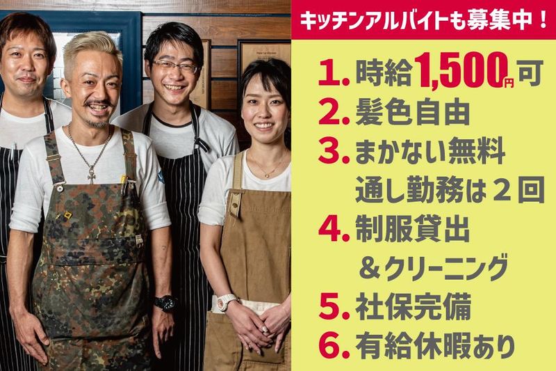 職場環境 ひげ・ネイル・ピアスOK・髪型・髪色自由✨ ※ネイル&ピアス規定あり <働いている仲間> ・アルバイトさんは、 大学生、フリーターが8名 ・社員は、20代〜30代後半で4名 ・女性6名 / 男性7名 喫煙所:喫煙所あり(屋内)