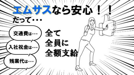 選考プロセス オンライン(Zoom)面接も対応しています!来社不要で即採用も有 面接時、履歴書不要!※面接1回、友達と応募OK 【応募後のご連絡】 応募→面接調整→面接(ZOOM/対面)→内定 (応募~内定まで最短で2日!!) 【電話応募の場合】 採用担当まで『Indeedを見た』とお申し付けください! 電話番号:03-5821-8577 (受付時間:9時~18時まで) 積極採用中!!お気軽にお問い合わせください('◇')ゞ 【面接地・登録地】 株式会社エムサス東京支店 所在地:東京都千代田区神田和泉町1-4-7 早尾ビル 4F 電話番号:03-5821-8577 メールアドレス:tokyo_kansei@msas.co.jp 【問合せ先について】 問合せ先:03-5821-8577 【電話番号】 0358218577 【メールアドレス】 tokyo_kansei@msas.co.jp