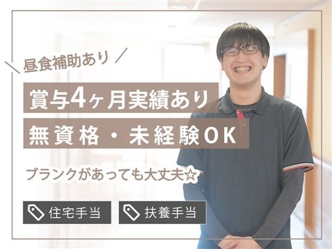 無資格でも未経験でもOK☆賞与実績4ヶ月分!1食330円、おかわり自由の昼食あり★ブランクのある方もOK!住宅手当や扶養手当を支給【船橋市・三咲駅・ユニット型特養・介護職・正職員】