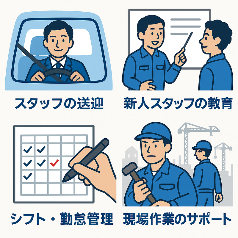 仕事内容 ✅ここがポイント・・━━・・━━・・━━・・ ⭐ゆっくり12時スタートで無理なく勤務 ⭐月給25万円で安定収入を実現! ⭐正社員登用制度◎キャリアUPも可! ⭐面接は1回のみでスムーズ採用♪ ⭐昇給・賞与ありでモチベーションUP◎ ・・━━・・━━・・━━・・━━・・━━・・━━・ 【⏩仕事内容】 スタッフの管理・サポートを中心とした 現場管理業務をお願いします。 具体的には… ◆スタッフの送迎 ┗事業所から各現場まで 片道30分程度の運転 ◆新人スタッフの教育 ┗基本的な作業手順・ルールを指導 ◆シフト・勤怠管理 ┗スタッフの出勤状況をチェック ◆配送センターでの現場作業 ┗荷物仕分けなど ◆現場作業のサポート ┗必要に応じて現場をサポートし 全体の流れを把握 ◆・―・―当社について―・―・◆ 私たちは人と企業を繋ぐ『架け橋』 となることを目標に日々取り組んでおります。 安心できるように丁寧なサポート体制や、 ライフスタイルに合わせた お仕事のご紹介を行っています。