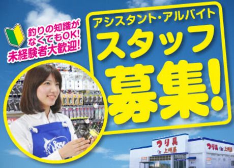 仕事内容 難しい業務は無いので、接客や販売が未経験からのスタートでも安心です! お仕事の中心はレジ業務になりますが、その他にも商品のタグやラベルの貼り付け、商品の品出しといった補助的な業務もお願いしていきます。お仕事はどれも簡単なものばかり!人と接することが好きな方なら未経験の方でも大丈夫!しっかりとサポートをしていくので安心してくださいね! 釣りやアウトドアが好きな方はもちろん、釣りの知識や経験が全く無い方も歓迎します! 「釣りの経験や知識が全く無い…」そんな方でも大丈夫!お客様からの専門的な質問や問い合わせは、社員が対応するので安心です!レジの打ち方や商品のこともイチからちゃんと丁寧に教えていくので、焦らずに自分のペースで覚えてくれれば大丈夫ですよ!釣りやアウトドアが好きな方は、自分の知識をフルに活かしながら楽しく働ける環境です! フリーターさんや主婦さんが中心に活躍中のお店!時間や曜日など、働き方はお気軽に相談OKです! 現在お店では、学生さん、フリーターさん、主婦さんなど、幅広い世代のスタッフが活躍しています!プライベートと両立しながら自分のペースで無理なく働けるように、シフトは希望をしっかりと考慮します!時間や曜日などは遠慮なく気軽に相談してくださいね!交通費の支給もあるので、無駄な出費を抑えながらしっかりと稼げます! スタッフ同士の仲も良く、アットホームなお店!お客様との会話を楽しみながらお仕事ができます! 年齢や職歴に関係なくスタッフ同士の仲が良いので、お店はいつも明るい雰囲気!気さくなスタッフが多く、とても働きやすいですよ!お客様も男女問わず幅広い年齢層の方がいらっしゃいます。常連さんも多いので、お客様との何気ない会話も楽しみながらお仕事ができますよ!スタッフみんなで、あなたに会える日を楽しみにしています! 株式会社上州屋は「釣り」を通して、お客様に「夢と楽しみ」を提供し続けて行きたいと考えています。 当社は昭和38年に釣具界に参入して以来、常に「地域一番」の釣具専門店を目指して顧客第一主義を徹底してきました。今では全国に約150の直営店を展開し、全国ネットワークを誇る日本最大級の釣具店チェーンに成長しました。これからも現状に満足することなく、より多くのお客様に「釣りの素晴らしさ」を伝え続けていきます。