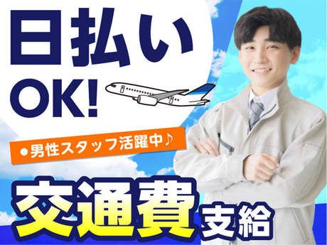 仕事内容 一生モノのスキルが身につく!空港関連設備のメンテナンスのお仕事 ☆・-・☆ 空港内かんたん設備サポート ☆・-・☆ ◆ お仕事内容 ・電球の交換など、シンプル作業 ・空調や水回りのチェック(手順あり) ・トイレの詰まりや水漏れを見つけたら担当へ連絡&対応 ・ちょっとしたお直しや軽作業 まずは 簡単なチェックや交換 からスタート! 慣れてきたら少しずつできることを増やしていけます。 ◆ 勤務環境 ・20~40代の男性スタッフが活躍中 ・空港内なので安心&キレイな環境 ・続けるうちに設備の知識も自然と身につきます♪ ★おすすめポイント★ ━━━━━━━━━━━━━━━ 一生モノのスキルが身につく! 空港設備のメンテナンススタッフ ━━━━━━━━━━━━━━━ ■■ 安心の職場環境 空港という安定した施設でのお仕事。 景気に左右されにくく、長く安心して働けます! ■■ 未経験スタート歓迎! 電球交換やかんたんな点検など、 初心者でもすぐできる作業からお任せします。 研修や先輩のフォローもあるので心配いりません♪ ■■ 働きながらスキルアップ 設備管理の知識や技術を自然に学べます。 資格取得を目指すことも可能! 手に職をつけたい方にピッタリです。 ■■ 資格勉強の時間も◎ 見回りや対応がないときは、 資格の勉強時間に充ててもOK! スキルアップとお給料を両立できます。 ■■ 正社員登用あり 頑張り次第で正社員も目指せます。 「長く安定して働きたい」という方におすすめ! 未経験からスタートできる空港設備のメンテナンス。 まずは気軽にチャレンジしてみませんか?