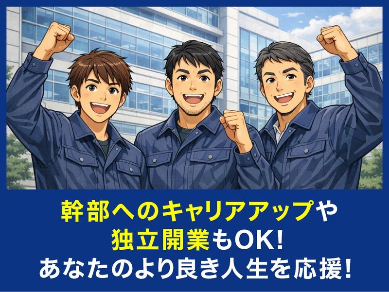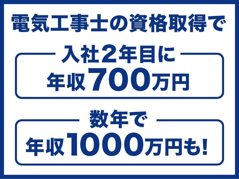 仕事内容 _/_/_/建物、施設、オフィス、店舗の 業務用エアコンや建物空調設備に関して 設置、修理、定期メンテナンス、 分解洗浄ほか幅広い業務をお任せします。 *★*―― < P O I N T >――*★* ✅電気工事士は年俸400万円以上。 ✅資格がなければ年俸300万円スタート。 全ての空調機器について学べる! ✅資格取得応援!未経験でも一から育てる。 ✅<年収例> 🌟入社2年で年収700万円は当たり前! 🌟入社3年で年収800万円も可能! 🌟入社5年で年収1000万円も目指せる! ✅適性があればすぐにでも責任者に昇格。 ■〓■〓■〓■〓■〓■〓■〓■〓■〓■ ■ ■ ■ 最短で資格も取れる。胸を張れる! ■ ■ ■ ■〓■〓■〓■〓■〓■〓■〓■〓■〓■ 職人や技術者がずっと活躍できる、 恵まれた環境や待遇がここにあります。 経験を積むこと、資格を取ること、 全て一からできる体制が整っているので 業界未経験でも心配ありません♪ 空調設備修理のスクール事業にも 取り組んでいるほどで育成はお手のもの。 講師をやっている協力会社の ベテランから教わったり、 メーカーから表彰される技術者からも 指導を受けられます。 勉強は苦手だった… というあなたでも稼ぎに直結するから 興味が持てるはず。 素直に学んでいけばOKです! ■〓■〓■〓■〓■〓■〓■〓■〓■〓■ ■ ■ ■ 依頼がどんどん舞い込み、稼げる! ■ ■ ■ ■〓■〓■〓■〓■〓■〓■〓■〓■〓■ お客様は企業、官公庁、医療機関ほか。 多くは私たちが元請けの立場で 全国からの依頼にお応えしています。 👍どんなメーカー製でも、古くても大丈夫。 👍補助金申請のサポートサービスも提供。 👍電気代15~55%削減のノウハウあり。 👍協力会社のネットワークがある。 👍問題の根本から解決する真の技術者のみ。 だから全国から問い合わせが引っ切り無し。 フィールドセールスが全国を飛び回り、 現状を確認した上で受注し、 それから技術者、あなたの出番になります! なにしろ案件数が膨大。 場数が踏める、経験値がどんどん上がる。 あっという間にレベルUPが積み重なる! ■〓■〓■〓■〓■〓■〓■〓■〓■〓■ ■ ■ ■ 幹部への昇進や独立も叶う! ■ ■ ■ ■〓■〓■〓■〓■〓■〓■〓■〓■〓■ この空調事業は拡大中でポストも増え、 幹部昇進などキャリアが構築できます。 また事業はとても多彩。 ◎自治体ゆるキャラ関連の企画・制作 ◎遺伝子検査を活用した学習塾の運営 ◎水素関連事業 ◎工場設備・ロボット事業 ◎遠隔医療相談システムの導入支援 今後も事業は増え、分社化、グループ化。 あなたがビジネスパーソンとして 活躍したり、社長になる未来もある。 そんな柄じゃないな、というあなたには 技術者として独立も選べますよ! 電気工事士は何十万人といます。 あなたにもなれます。 どこで仕事をするかで人生は変わる。 飛び込んできていただけたら嬉しいです!