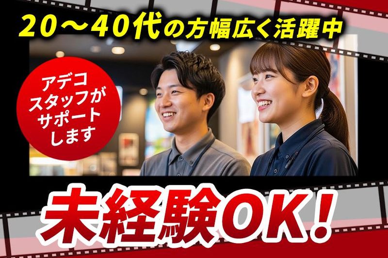 仕事内容 ✨\\2026年2月スタート!// ✨週3日~OK ✨時給1,600円以上! ✨土日を含むシフト制⇒ライフスタイルに合わせて選べる勤務日! ✨映画や動画サービスのPRスタッフ ✨《インセンティブあり》頑張った分だけお給料になる! ✨未経験OK!研修&充実したフォロー体制あり◎ ✨20代~40代の幅広く活躍中 映画館に来場される方に、動画配信サービスのPRをするお仕事です♪ ▽具体的に… ・映画館(シネコン)に来場されたお客様へ、動画配信サービスのご案内 ・キャンペーン内容のご説明 ・アプリのインストール、初期設定のサポート ・登録手続きのお手伝い ・不明点のフォロー(常に聞ける環境あり) 【ここが魅力!】 ・映画やドラマ好きにはたまらない環境 ・駅直結のオシャレなシネコン勤務 ・周りはほぼ全員アデコスタッフで安心 ・アデコ社員による手厚い研修・フォローあり ・未経験スタートの方も多数活躍中 【勤務地について】 ◆流山・八千代エリア◆ [奇数月]流山勤務 [偶数月]八千代勤務 ※流山市、八千代市の両方に通勤可能な方 ※いずれか1か所のみの勤務希望は不可となります。