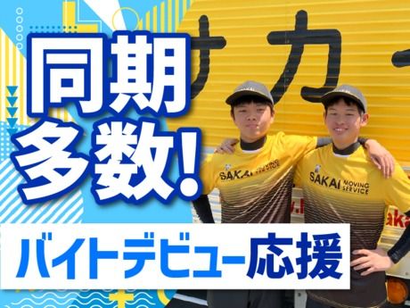 【保険制度】 雇用保険、労災保険、健康保険、厚生年金 待遇・福利厚生 【福利厚生】 ★交通費規定支給 ★制服レンタルあり(規定有) ★社員登用制度あり (アルバイト→契約社員→準正社員→正社員登用の実績あり) ※最短3ヶ月で準正社員になれます ★日払い(翌日払い※残業代は除く) ★残業代は1分単位で計算(末締め翌月10日払い) ★車・バイク・自転車通勤OK <サカイ引越センターならではの好待遇!> ★社会保険料の個人負担分を会社が負担! 社会保険料負担ゼロで手取りUP!! ★AI面接実施中! 履歴書不要!24時間365日、 好きな時間に面接が受けられます