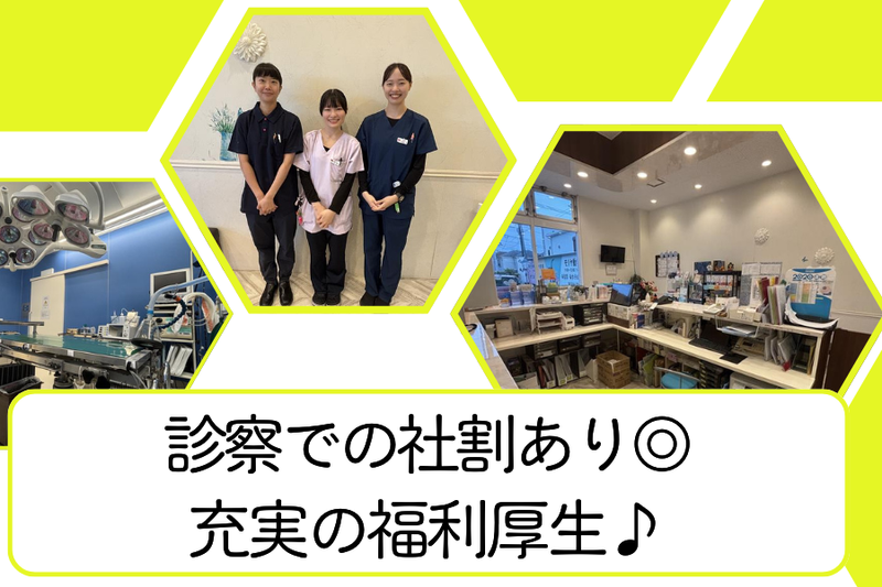 【保険制度】 雇用保険、労災保険、健康保険、厚生年金 待遇・福利厚生 【福利厚生】 ◎昇給あり ◎賞与あり ◎交通費支給 ◎慶弔休暇 ◎社会保険完備 ◎育児休業制度 ◎介護休業制度 ◎産前産後休業制度 ◎認定医取得補助あり ◎健康診断費用全額負担 ◎自院診察費用割引制度あり ◎セミナー・学会参加支援制度あり  ̄ ̄ ̄ ̄ ̄ ̄ ̄ ̄ ̄ ̄ ̄ ̄ ̄ ̄ ̄ ̄ ̄ ̄ ✨獣医師さんにインタビュー✨ ⏩どんな職場? ⇒明るく活気のある職場で、スタッフ同士のコミュニケーションもスムーズです。休みも調整しやすく、有給も気兼ねなく取得できます。 また、基本的に19時退社が徹底されており、オンとオフの切り替えがしやすい環境です。無理なく働き続けられる職場づくりをみんなで大切にしています。 ⏩仕事で楽しいと感じるのはどんな時? ⇒難しいケースに向き合い、治療がうまく進んでペットが元気を取り戻した瞬間に大きな達成感を感じます。 また、飼い主さんから「ありがとう」と感謝の言葉をいただけた時は、この仕事をしていて本当に良かったと感じます。 ⏩入社前に不安だったことは? ⇒実は、大きな不安はほとんどありませんでした。 新しい環境への緊張はあったものの、入ってみるとすぐに周りの雰囲気に助けられ、自然と仕事に馴染むことができました。 ⏩どんな人がこの仕事に向いている? ⇒多様な症例に対して、チームで協力しながら取り組める方に向いています。新しい知識や技術にも自ら進んで触れ、学びを楽しめるタイプの方は、特に成長しやすい環境です。 ⏩求職者に向けて一言! ⇒意欲のある人ほど、しっかり評価される職場です。成果に応じて給与も伸びていきます。さらに英語対応の機会が多く、語学力を活かしたい方にはぴったりの環境です。やる気と前向きな姿勢があれば、どんどん成長できる職場なので、ぜひ一緒に働きましょう!