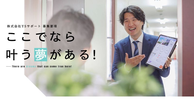 アピールポイント ●未経験OK!充実の研修制度 ・・・・・・・・・・・・・・・・・・・・・・・・・・・・・・・ 前職が工場勤務や販売職など、 営業未経験のメンバーが多数在籍。 入社後は教育担当がマンツーマンで 基礎から指導し、現場同行で 実践的に学べます。商材力が高いため、 未経験でも成果を出しやすいです。 ●チーム制でサポート万全! ・・・・・・・・・・・・・・・・・・・・・・・・・・・・・・・ 20~60代まで幅広い世代が活躍中。 上下関係がなく、代表も気軽に声を かけてくれる風通しのいい社風です。 月1回の食事会やイベントなど、 チームのつながりを大切にしています。 「人間関係のよさで続けられる」 との声も多数! ●安定+収入を両立できる報酬制度 ・・・・・・・・・・・・・・・・・・・・・・・・・・・・・・・ 固定報酬+インセンティブ制 または 完全歩合制から選択可能。 生活を安定させながら収入アップも 目指せます。チームリーダー昇格で 月10~29万円の昇給実績あり。 日払いや週払いにも対応しており、 即収入が必要な方にも柔軟に対応します。