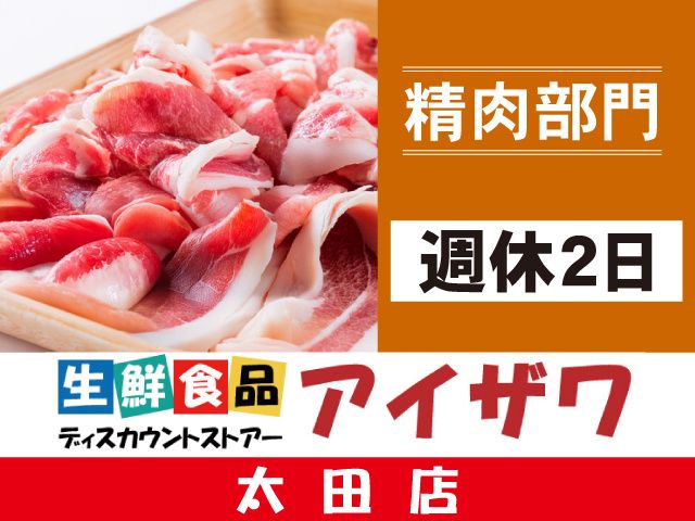 仕事内容 スーパーマーケットの精肉部門担当 加工業務と商品の品出しなどのお仕事 アピールポイント ━━V━━━━━━━━━━━━━ ・新鮮な商品をお客様に提供するために 効果的な陳列の仕方や売り場づくりの 経験ができる。自分のアイディアを 活かしてお仕事することができます。 ・精肉の加工技術が身に付きます ・商品の陳列や補充、在庫の移動など、 立ち仕事・力仕事もありますので 体を動かすのが好きな人に向いています。 仕事内容 ━━V━━━━━━━━━━━━━ 生鮮ディスカウントストアーの 精肉部門での商品加工や品出し ・商品加工 ・精肉加工品のパック詰め ・商品にラップや値付けの作業 ・商品を売り場への品出し作業 ・売り場の商品整理や清掃 勤務地 アイザワ太田店 太田市新島町343ー1 スーパーでの業務経験がない方でも イチから丁寧に教えますので 安心して始めることができます。 スライサーの機械や包丁を使った 加工作業についても段階を踏んで 少しずつお願いしていきますので 未経験の方でもご安心ください。 店内は背の高い陳列什器がないので 広く開放感があって明るく 清潔な職場環境です。 <採用に関するお問い合わせ> 下記までお気軽にご連絡ください。 アイザワ太田店 TEL:0276-30-6171 (店長 相澤まで)