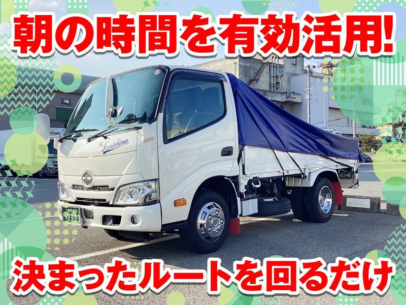 仕事内容 - \栗島運送で新しい朝活始めませんか!?/ ★朝の時間を有効活用! ★土日、長期休暇は休み◎ (学校の休みに準じる) ★配送先は固定! ★早く終わっても日給保証有! - ▼仕事内容▼ 学校へ給食食材の配送をお任せします。 具体的には、、、 事務所へ出勤 ↓ 学校へ配送し、給食のスタッフさんへ 食材を手渡し ↓ 事務所へ戻り退勤 - ▼ここがポイント!▼ ・配送ルートは固定のため慣れると 自分のペースで配送ができます! ・最初は先輩の横乗りからスタート! →ブランクがある方も丁寧にサポート しますので安心してくださいネ◎