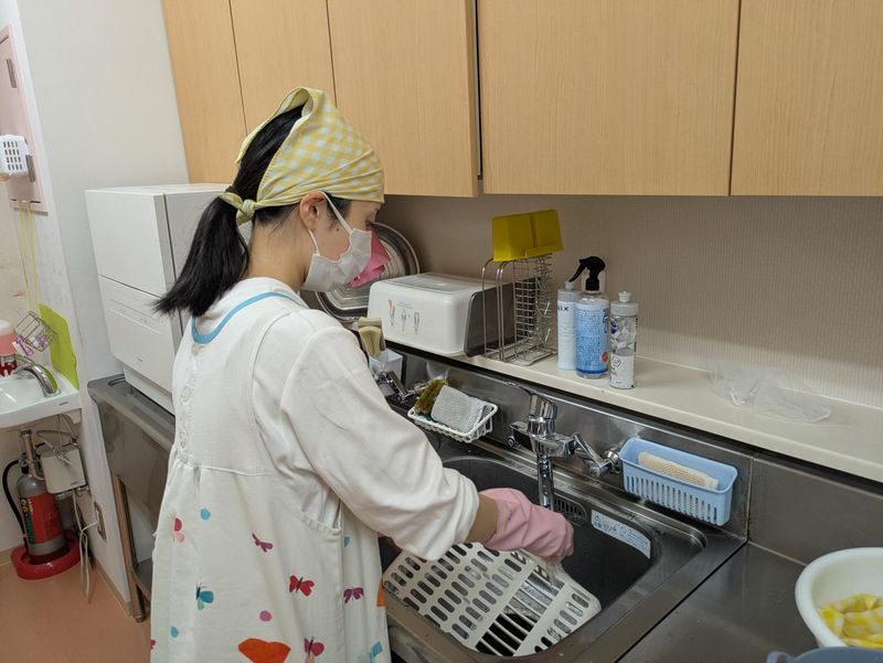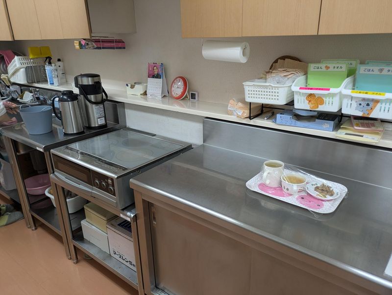 職場環境 子どもたちのご飯スペースのすぐ隣に キッチンがあり、温かい雰囲気の中で 料理から提供まで携われます♪ 常勤1名・パート1名の少人数体制で、 スタッフ同士の連携もしっかり取れる 環境です。明るいメンバーが揃う、 平均勤続10年超の居心地よい職場⭐