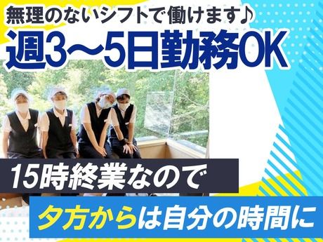 勤務時間 ・勤務時間: [1] 09:00~15:00 ・最低勤務日数(週):3日 週3~5日でOK! ※土日祝勤務できる方歓迎