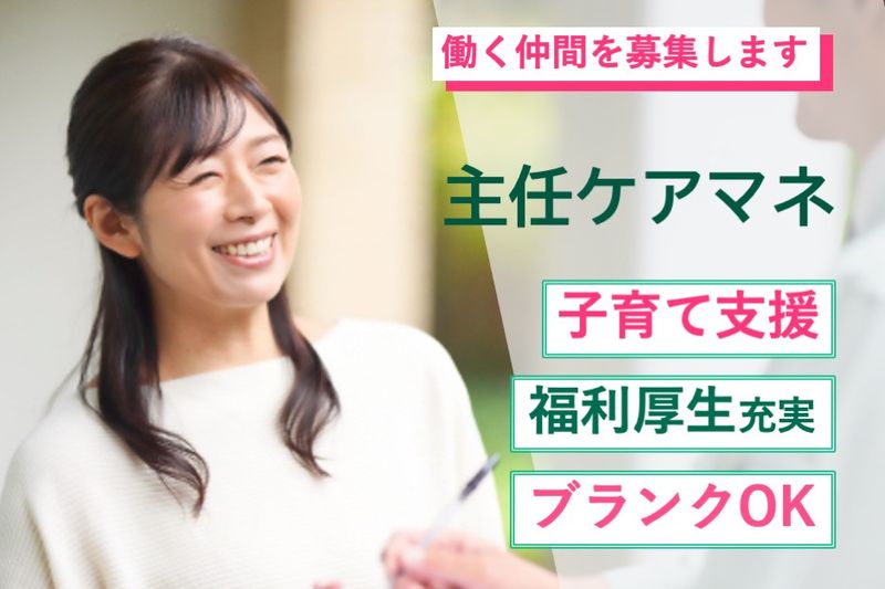 【アピールポイント】 居宅支援事業所で主任ケアマネを募集します ●土日祝休み ●ブランクOK ●賞与年2回 ●外国人スタッフも活躍できる職場です。